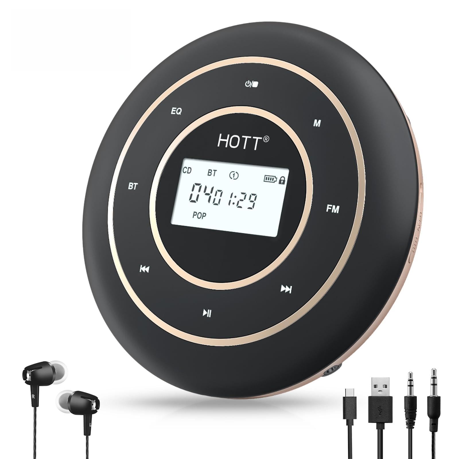 HOTT Portable CD Player Built-in 4 Speakers Bluetooth 5.3 Anti Skip CD Player,FM Transmitter,A-B Repeat AUX Cable Rechargeable 1800mAh Small CD Players for Car