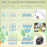 【ZERHUNT Latest Bubble Solution】- In recent years, we have sold over 1 million Zerhunt bubble machines. However, many customers struggled to find the right bubble solution for their machines. After extensive research, we proudly present our safe and eco-friendly bubble liquid, specially designed for bubble machines. Our bubbles are made from an odorless and non-toxic soap solution, with natural saponin as the main ingredient. This ensures that our bubbles are gentle, mild, and completely safe for human skin. 【Fantastic for All Bubble Toys】 - Zerhunt Concentrated bubble solution refill can be used with a wide variety of bubble toys, including bubble machines, bubble guns, bubble wands, bubble lawn mowers, bubble blowers, bubble makers, and party favor bubbles. Enjoy hours of bubble blowing fun with this high-quality bubble refill solution. 【Get All Kinds of Bubbles】- Every bottle of Zerhunt bubble machine liquid comes with instructions on the back for creating even bigger bubbles. You can also dilute the bubble solution in different proportions to achieve different types of bubbles. Diluting the solution 2 times will produce giant bubbles, 4 to 8 times will create regular bubbles, and 9 to 10 times can be used in a bubble machine to produce a large quantity of small bubbles. The 33.8-ounce concentrate solution can be diluted up to 2.5 gallons. 【Great For Outdoor Activities&Parties】- Ideal for large parties or for refilling smaller bottles, bubble machines and toys, this bubble solution is a party essential. All kinds of bubble makers are the perfect tool for Outdoor Activity, Carnival Prize, Festivals, Theme Party, Birthday, Camping Trips, Ceremony, Halloween, Easter, Weddings, School Classroom and More. 【Excellet Customer Satisfication】- ZERHUNT has been committed to the research of bubble machines for many years. We not only provide high-quality products but also have high-quality after-sales service. This is why millions of customers choose our bubble machines. We provide a 1-year guarantee and 24-hour customer service, if you have any questions about our products, you can contact us and we will solve your problem the first time!