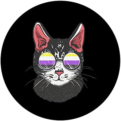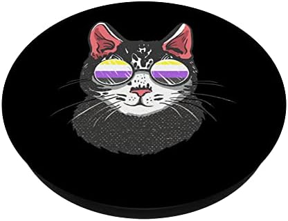 Non Binary Genderqueer Cat Sunglass Nonbinary Pride LGBT PopSockets Swappable PopGrip