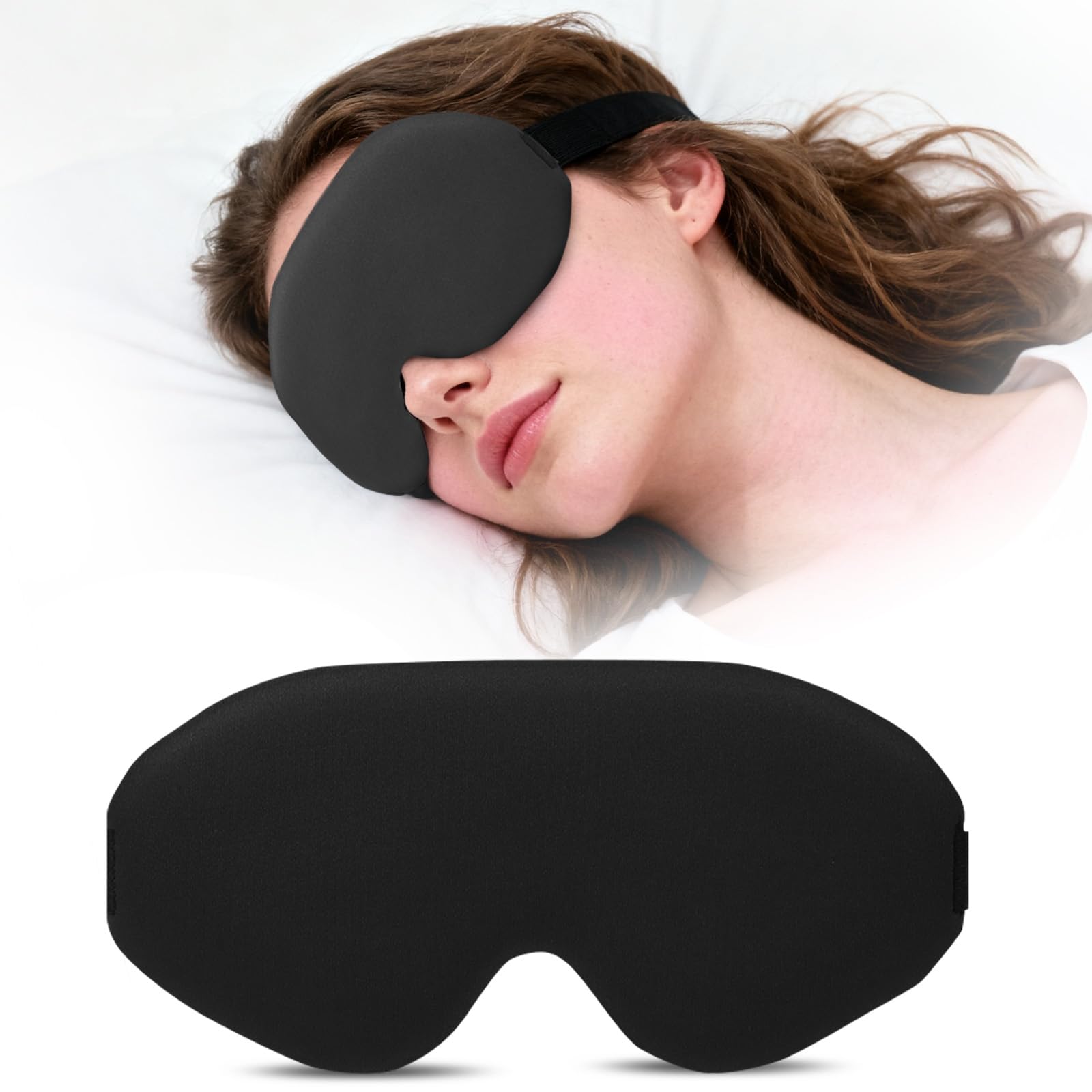 - 🌙【Ergonomic Design】 Our comfortable sleep mask with double thickened nose wing design contours to your face and shuts out bright light coming from nose area. In addition, full coverage sleeping mask eliminates pressure around ears and offers quietness, pillowy softness and darkness for better sleeping.