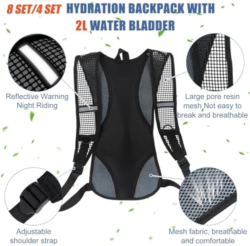 - Hydration Backpacks Bulk: you will receive 4 hiking hydration backpack in 4 different colors, including black, red, blue and green, each hydration backpack is equipped with a 2L water bladder
