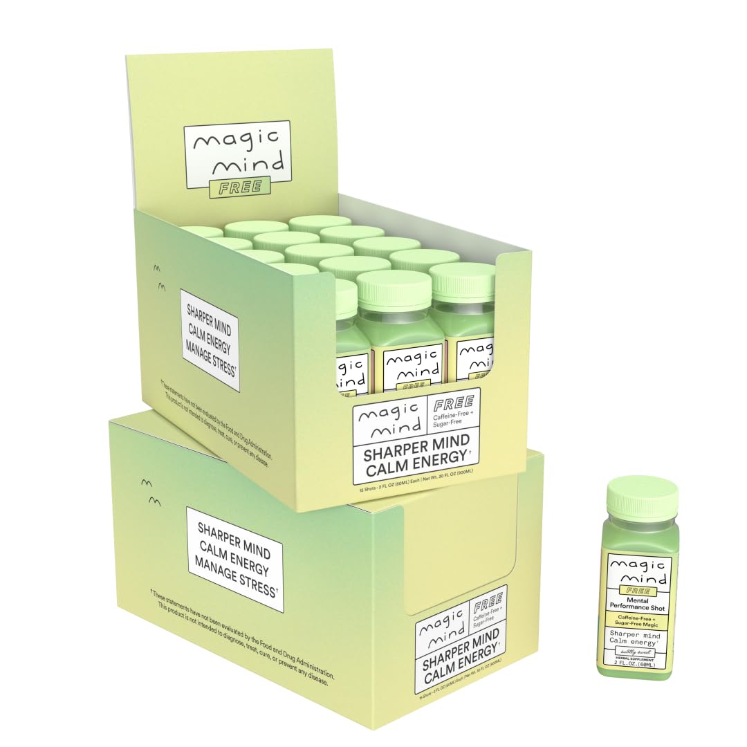 Magic Mind Energy And Focus Drink Shots - Stress Relieving, No Jitters, Ashwagandha, Vitamin B12, Vitamin C, Matcha Green Tea, Functional Mushrooms - 2 FL Oz (15 Pack)