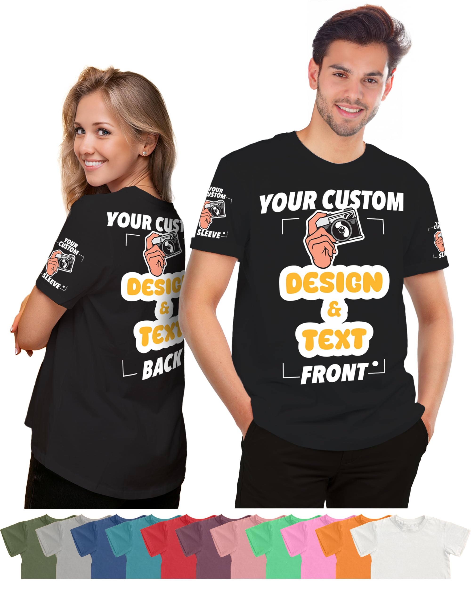 Custom T-Shirt - Personalized Tee Shirts for Men & Women - Customize Your Own US-Cotton Shirt with Front and Back Design