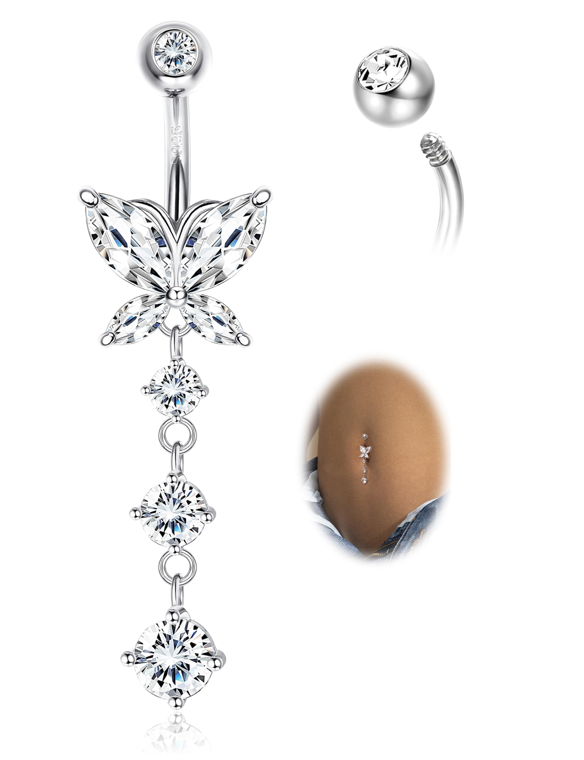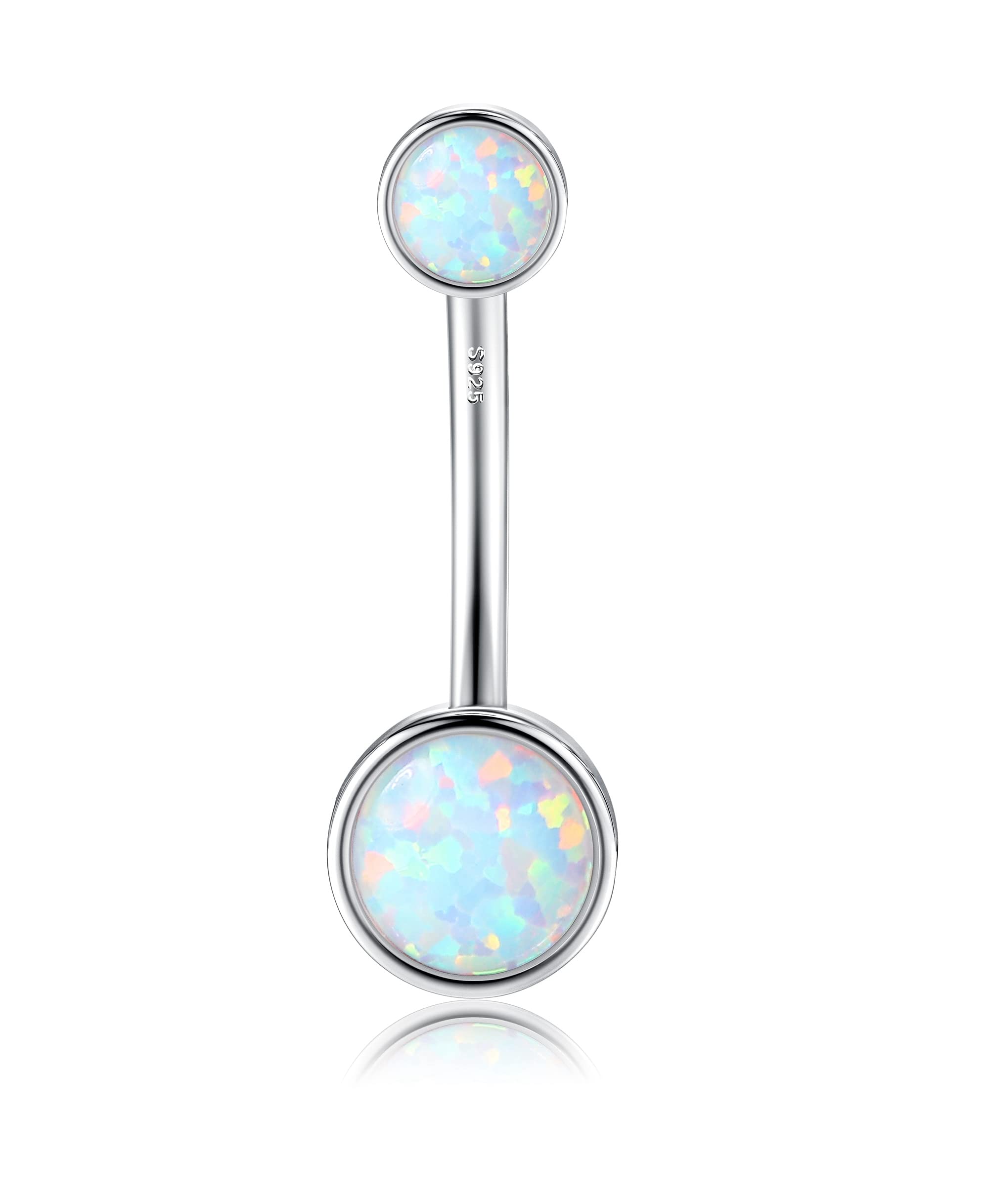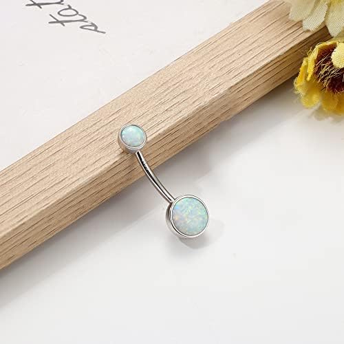 Sterling Silver 14G Belly Button Ring Opal CZ Navel Piercing Jewelry Long Bar Belly Rings for Women 12mm