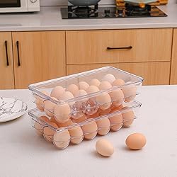 【18 Eggs Holder】The trays are sized 13 x 7 inches and 3 inches deep with 18 vacant spaces.Each space holds the eggs firmly to avoid any kind of bruise or damage. 【Premium Clear Egg Tray】 Remaining eggs can be figured out at a glance through this clear egg tray. Made of high-quality PET material, BPA-FREE and odorless. Not easy to bent and is durable for use. 【Covered and Stackable】Our egg tray is compact and stackable, can save a lot of space in the fridge, organize your refrigerator, keep your eggs fresh and prevents it getting crushed or smashed. 【Keep Eggs Fresh】The storage bin comes with a solid plastic lid that can preserve your eggs better, protect eggs from other smells and increase the lifetime of your eggs. 【Widely Used and Easy to Clean】These egg cartons suitable for fridge, freezer, pantry, refrigerator, kitchen cabinets, camping and picnic.Easily to clean with soap and water. NOT DISHWASHER SAFE.