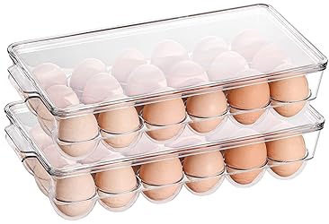 Sooyee 2 Pack Egg Holder for Refrigerator, Plastic Egg Storage Container, Fridge Egg Organizer, Clear Refrigerator Organizer Bins with Lids, Stackable Tray Holds 18 Eggs