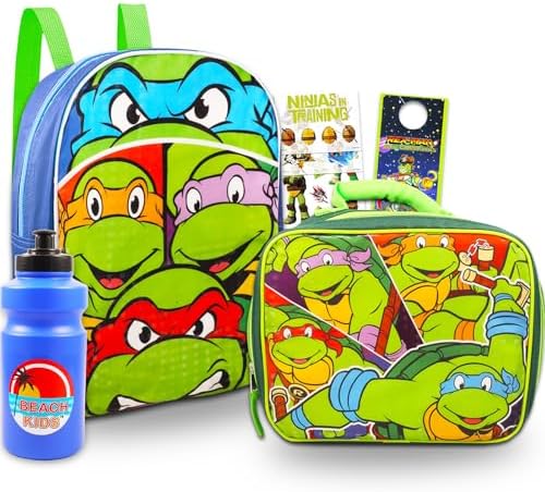 - Este conjunto de mochila escolar TMNT incluye una mochila mini de 11” con correas ajustables para los hombros, compartimento con cierre de cremallera y asa superior, con ilustraciones coloridas de las Teenage Mutant Ninja Turtles.