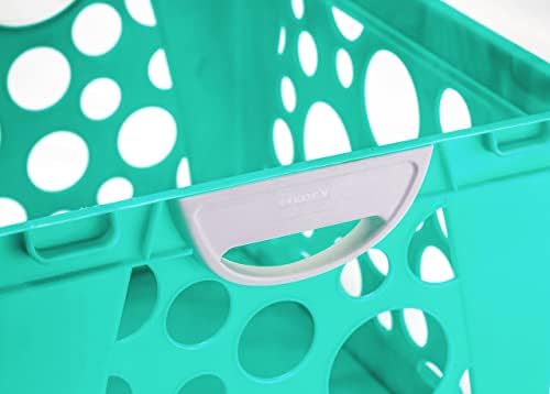 The new Storex storage crate features rugged dependability with a more up-to-date style. The traditional milk crate has received upgrades which include a solid bottom, easy grip handles, and improved drop test performance. It holds letter or legal hanging files and folders and can be safely stacked up to six crates high. Stack them on their side to creates a custom shelf unit or toss them in your car for mobile storage. These crates interlock in every direction.