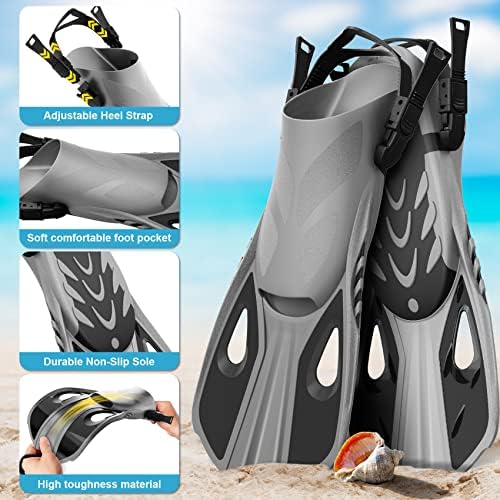 - [Pleasant Underwater Journey Partner] Our adult snorkel set with fins is paired with a fast-drying mesh bag which is easy for you to carry with your coastal traveling, local lake adventure, or pool swim practice. As your snorkeling partner, we provide 100% guaranteed equipment and 24-hour after-sales support for any problems.