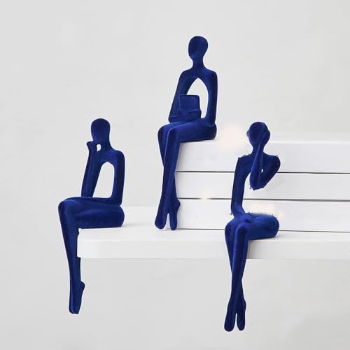 Octdays Navy Blue Thinker Statues for Home Decor, 3 Pcs Modern Minimalist Sculptures for Living Room Bookshelf Office Desktop Decor, Abstract Art Figurines Decorations