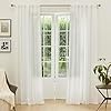 MYSKY HOME Natural Linen White Curtains 84 Inches Long, Semi Sheer Soft Cotton Window Drapes Set for Living Room Back Tab Elegant Cute Look Country Bedroom Curtains, 50" x 84", Beige, Pack-2