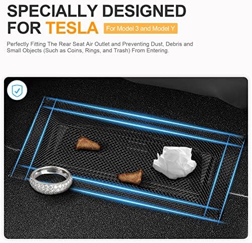 Backseat Air Vent Cover for Tesla Model 3 & Model Y, 2-Pack Rear Seat Air Condition Outlet Protector with Upgraded Mesh Cloth and Velcro, Car Air Vent Accessories for Tesla Model Y / 3