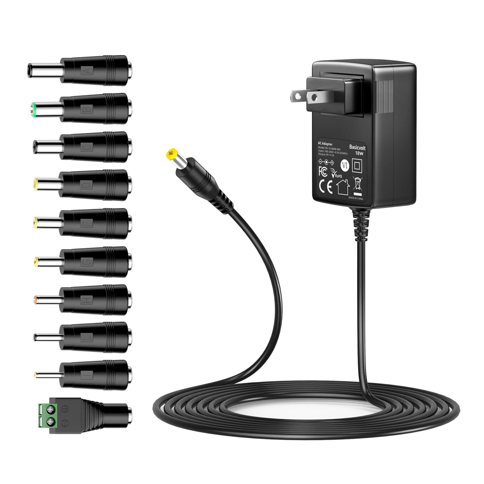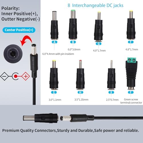 9V Power Supply AC Adapter DC 9Volt Power Adapter Charger 9V Power Cord with 8 Interchangeable DC Plug for 100mA 300mA 400mA 500mA 600mA 700mA 800mA 900mA 1000mA Equipment