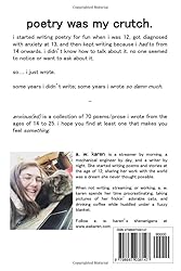 - Poetry was my crutch. I started writing poetry for fun when I was 12, got diagnosed with anxiety at 13, and then kept writing because I had to from 14 onwards. I didn't know how to talk about it. No one seemed to notice or want to ask about it. So... I just wrote. Some years I didn't write; some years I wrote so damn much. anxious(ed) is a collection of 70 poems/prose I wrote from the ages of 14 to 25. I hope you find at least one that makes you feel something.