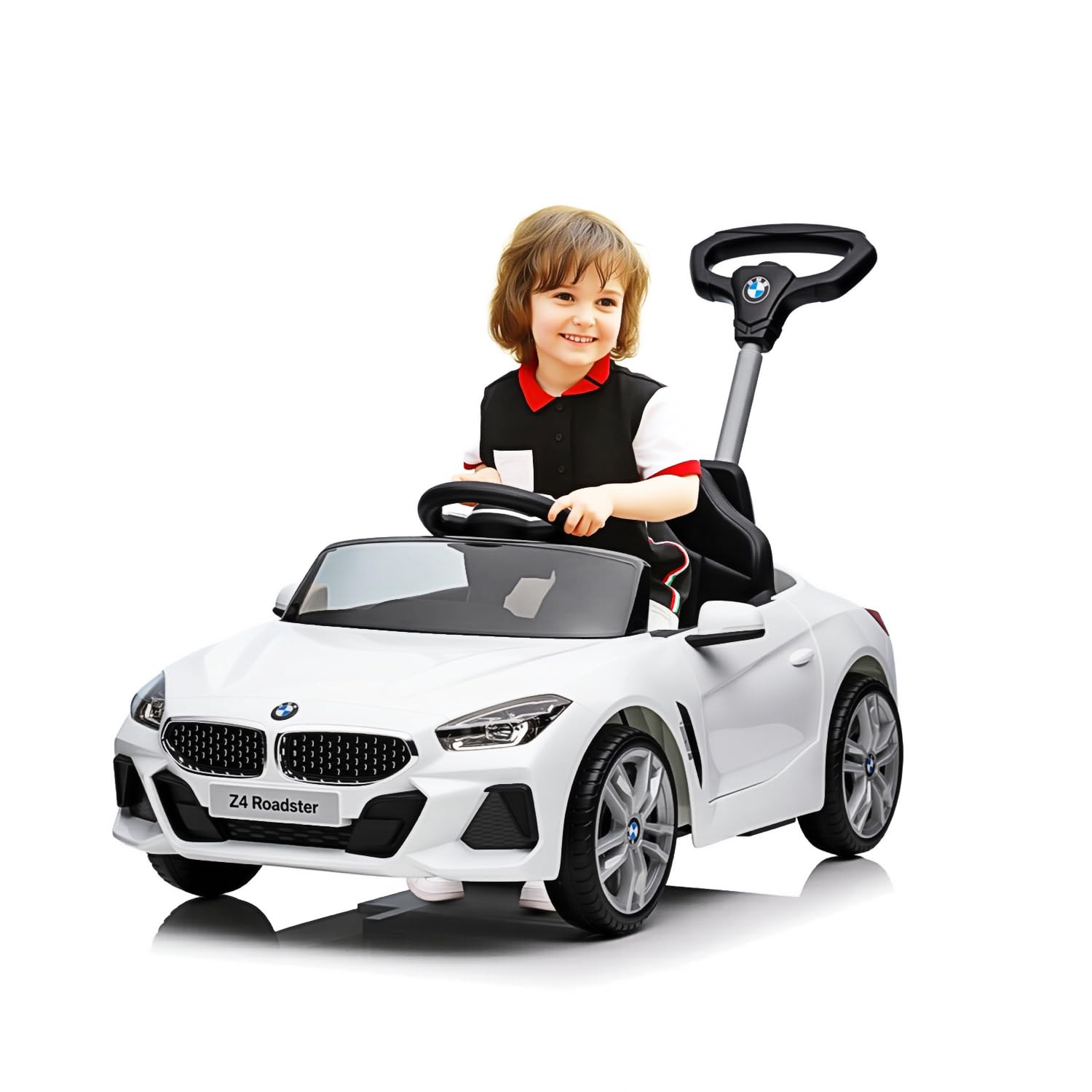 - Officially Licensed: With cool and stylish look, built-in music and a horn button (2 x 1.5V AA batteries required, not included), ultimate kids push car features the realistic design of the BMW Z4 car for toddler! The silent wheel gives you a quiet smooth ride!