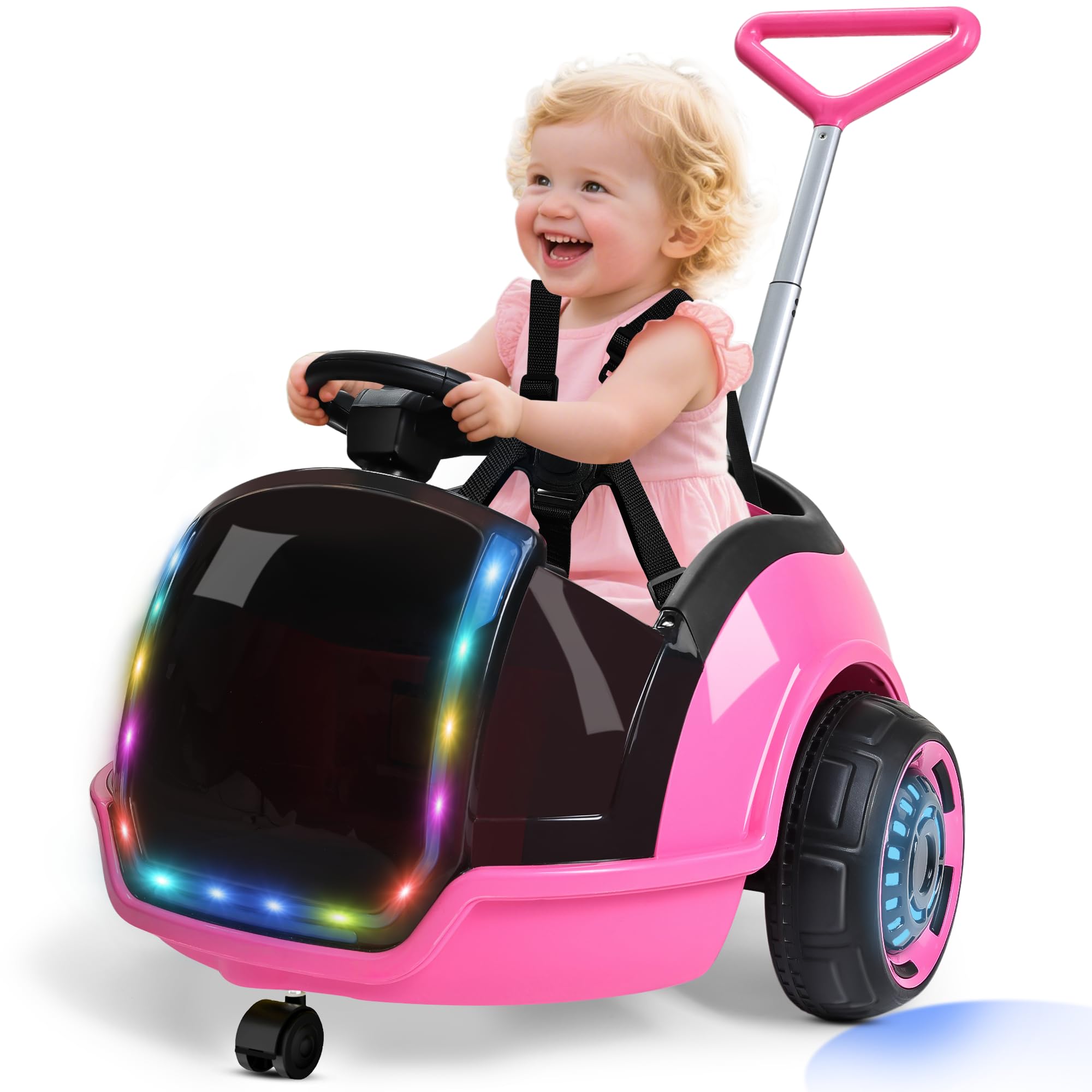 - Adult-supervised: This push car featuring an adjustable push bar that facilitates control turning, parents can supervise the mobility of the car and ensure the kid’s safety(Note:parents only control by push handle,No remote control)