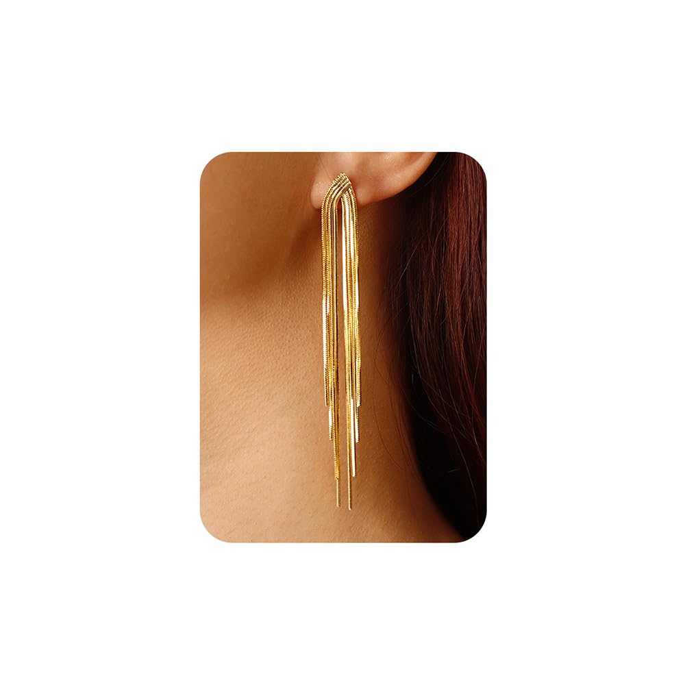 Kercisbeauty Vintage Teardrop Dangle Champagne Rhinestones Earrings for Women Wedding Bridal Long Stud Earrings for Women (Champagne)