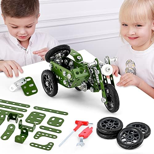 Creative Sets Building Toys Motor Tricycle Set-139 Pieces DIY Building Stem Projects Toys for Kids Boys Ages 8-12,Metal Building Toys Set Gifts for Model Military Motorcycle Fans