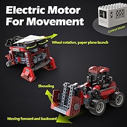 【Electric Motor Car Building Kit】These science kits offer endless hours of fun for young engineers! With 240 pieces and an electric motor, children can build 8 different moving science experiment models. They'll feel really proud when they make their own robot. 【Durable Stackable Toy Storage】This box measurement is 14.6"L * 11.9"W * 6"H. The storage box has 14 partition trays that can be placed or taken out according to your purpose and type. The removable tray keeps some of your smaller items neat and organized, and the extra depth allows for larger, bulkier supplies. 【 Family Bonding Time 】 Doing scientific experiments together is a good way for parents and children to build a great family relationship. Complete science projects with your kids as their friend and teacher, that’ll be an unforgettable and precious time. (Requires 2 AA batteries, not included) 【The Perfect Gift for Kids 】Our robotic kits designed for kids age 8-12 are cool stuff for a budding inventor, very suitable for elementary students to show their talents in a science fair. Packaged in a beautiful gift box with a sorting tray inside, these assembled electronic gadgets are perfect gifts for boys and girls for birthdays and Christmas. 【 Learn by Playing 】Encourage your kids to build their own robots and enjoy DIY science activities. By playing with these electric robots, children's curiosity and interest in physics will be stimulated, and they'll know how much fun it is to create a robot by themselves. 【Durable & Safe】Our building blocks are made of high-quality ABS material, colorful and durable, and highly compatible. The robotic kits come with detailed step-by-step picture instructions, easy for kids to build the electric kits quickly and smoothly. If you want to try more building models, download our app Apitor Kit to access instructions for 8 models.