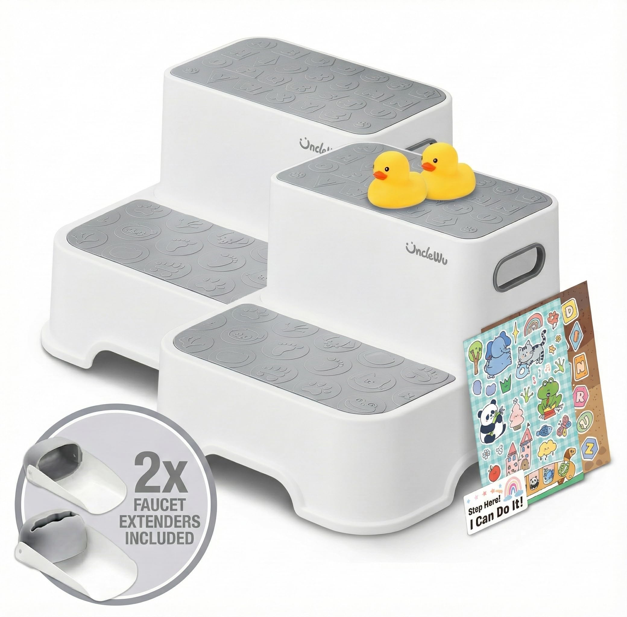 - UN BONUS & EASY TO CLEAN: Comes with Two Cute Rubber Ducks to make bath time and hand washing more fun! The sleek, dirt-resistant surface makes this Toilet Stool incredibly easy to maintain—simply wipe it down with a damp cloth or rinse it in the sink. No sharp edges or crevices for dirt to hide