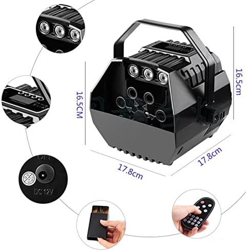 Specifications Product name: bubble machine Lamp beads: RGB3 in 1 Function: automatic/remote control Liquid consumption: 1.3L/h material: plastic Main scope of application: wedding bar, disco bar, KTV party, stage entertainment venue If you encounter a problem during the purchase process, you can contact us at any time by email, or use the Q&A function to ask questions, we will reply as soon as possible Features: The remote control small bubble machine can blow a large number of bubbles flying in the sky, creating a colorful dream world under the light. Package include: bubble machine*1