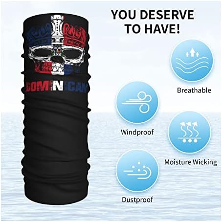 King Skull Dominican Flag Seamless Neck Gaiter Shield Scarf Bandana Face Mask Seamless UV Protection for Motorcycle Cycling Riding Running Headbands White