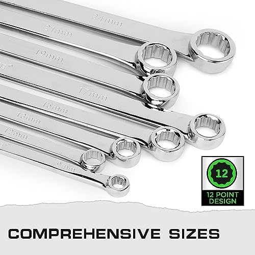 SWANLAKE 8PCS Extra Long Double Box End Wrench Set, CR-V, Less Effort Aviation Wrench Metric 8mm - 24mm