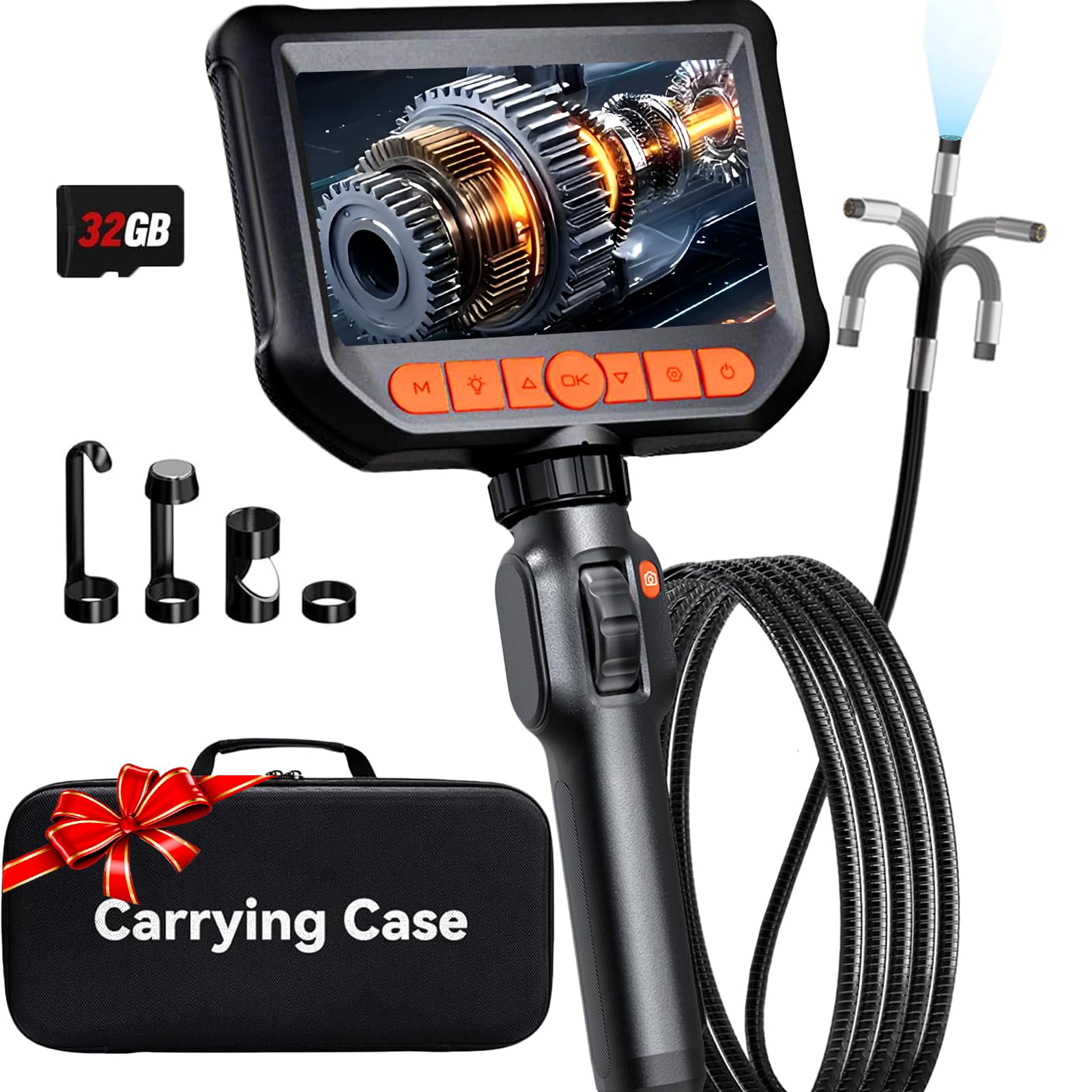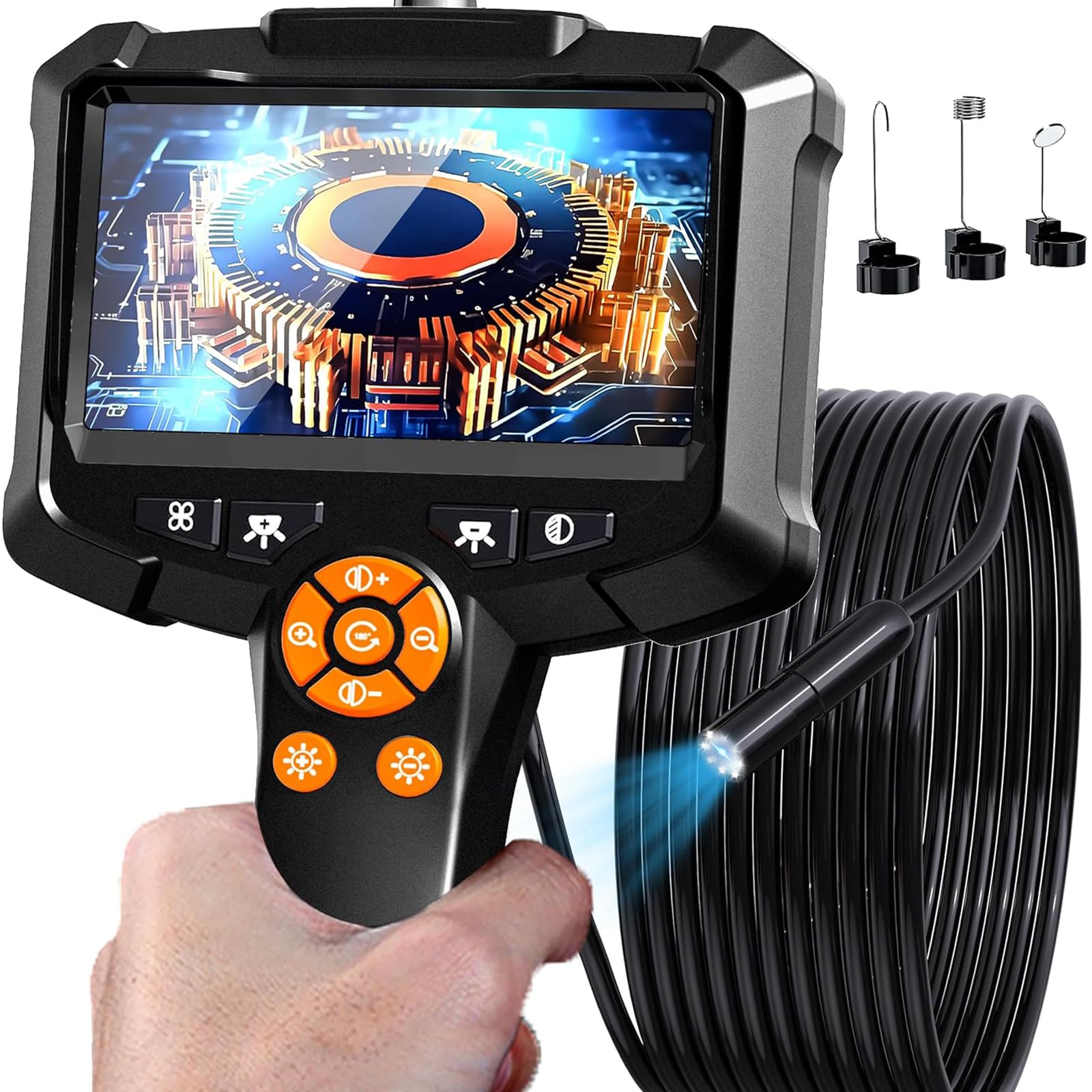 Endoscope Camera with Light, Borescope Camera with 4.3" IPS Screen, 1920P HD with 8 LED Lights, 16.4FT Semi-Rigid Cord Bore Scope, Gadgets for Men & Tools for Men
