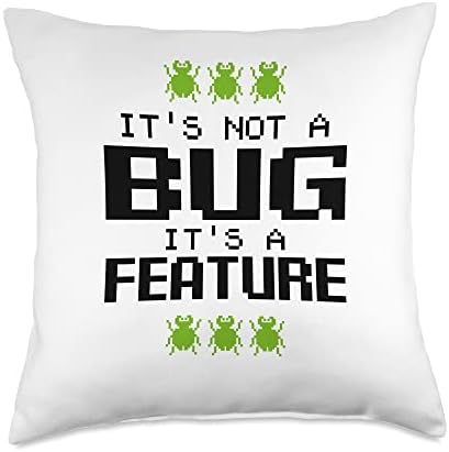 Computer Geek merch It's a Feature Coder Binary Code Throw Pillow, 18x18, Multicolor