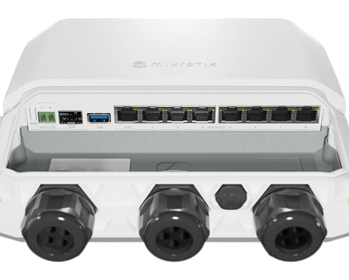 Mikrotik RB5009UPr+S+Out | Router PoE para Exteriores con 7 Puertos Gigabit Ethernet, 1x 2.5 Gigabit Ethernet, 10G SFP+, 1GB de RAM, 1GB NAND, CPU Moderno de Cuadro Núcleos