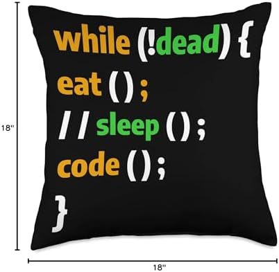 Programming Coding Gift For A Programmer Coder While Dead Eat Seep Code Programming Coder Programmer Throw Pillow, 18x18, Multicolor
