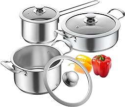 - Juego de cocina incluye: una cacerola de 2.5 cuartos de galón, una sartén de 8 pulgadas, una sartén grande de 10 pulgadas, una tapa de vidrio con borde de silicona visible de 8 pulgadas y un mango desmontable; Este juego Redchef tiene todo lo que necesita para su cocina diaria y también es adecuado para RV o camping, convirtiéndolo en un juego de cocina ideal para cocinar al aire libre