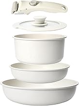 - 75% Ahorro de Espacio: Ahorre hasta un 75% más de espacio con el juego de ollas y sartenes apilables y mangos desmontables; Apile todas las ollas y sartenes de forma ordenada, ahorrando el 75% del espacio del armario y manteniendo la cocina organizada y limpia; Perfecto para cocinas compactas y una opción ideal para RV o campamentos