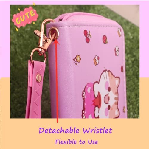 - 💕 Size: 13.5*9.5*3cm. 88 gram. The wallet comes with a cute keychain kitty charm and a wristlet!