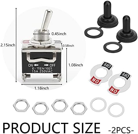 2PCS Toggle Switch 12V SPST ON/Off Waterproof Marine Toggle Switch,15A 250VAC Single Pole Solid Metal DC Switch for Chassis Lamp,Fog Lamps,Dome Light of Car,Truck,SUV (2 Pin)