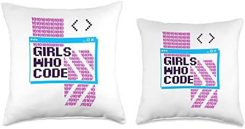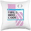Girl Who Code merch Code Like a Girl Programmer Coder Throw Pillow, 18x18, Multicolor