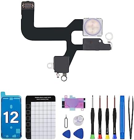 - 【Time Saving and Money Saving】All flash light replacement 100% Inspected by professional QC team before shipping and working perfectly. come with iPhone 12 flashlight flex cable Replacement kit+ A set of Repair tools+waterproof adhesive tape+Magnetic screw mat+Battery adhesive strips.