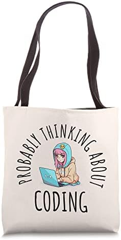 This programming lover design features a kawaii and cute programmer and reads 'Probably Thinking About Coding'.