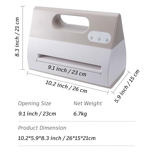 - Embossing machine size 10.2x5.9x8.3in ,passing size 9.1in