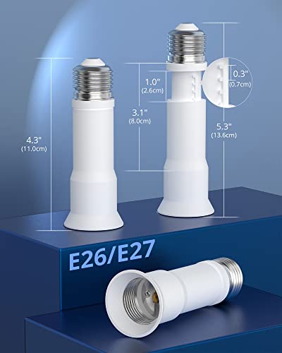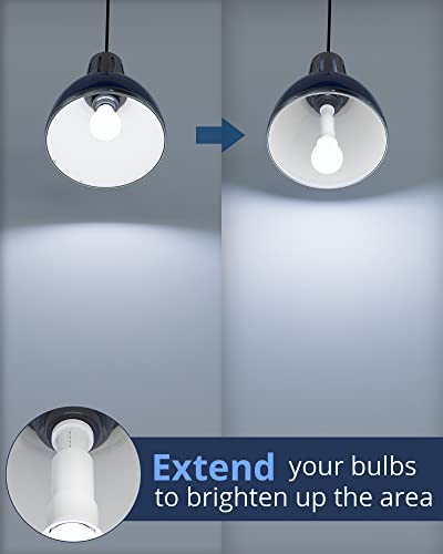- Easy to Install: No tools required, just screw it into an existing E26 lamp socket, and install a E26 medium base bulb, 360 degrees to extend the light range. Extended length: 3.1"-4.3", total length: 4.3"-5.3"