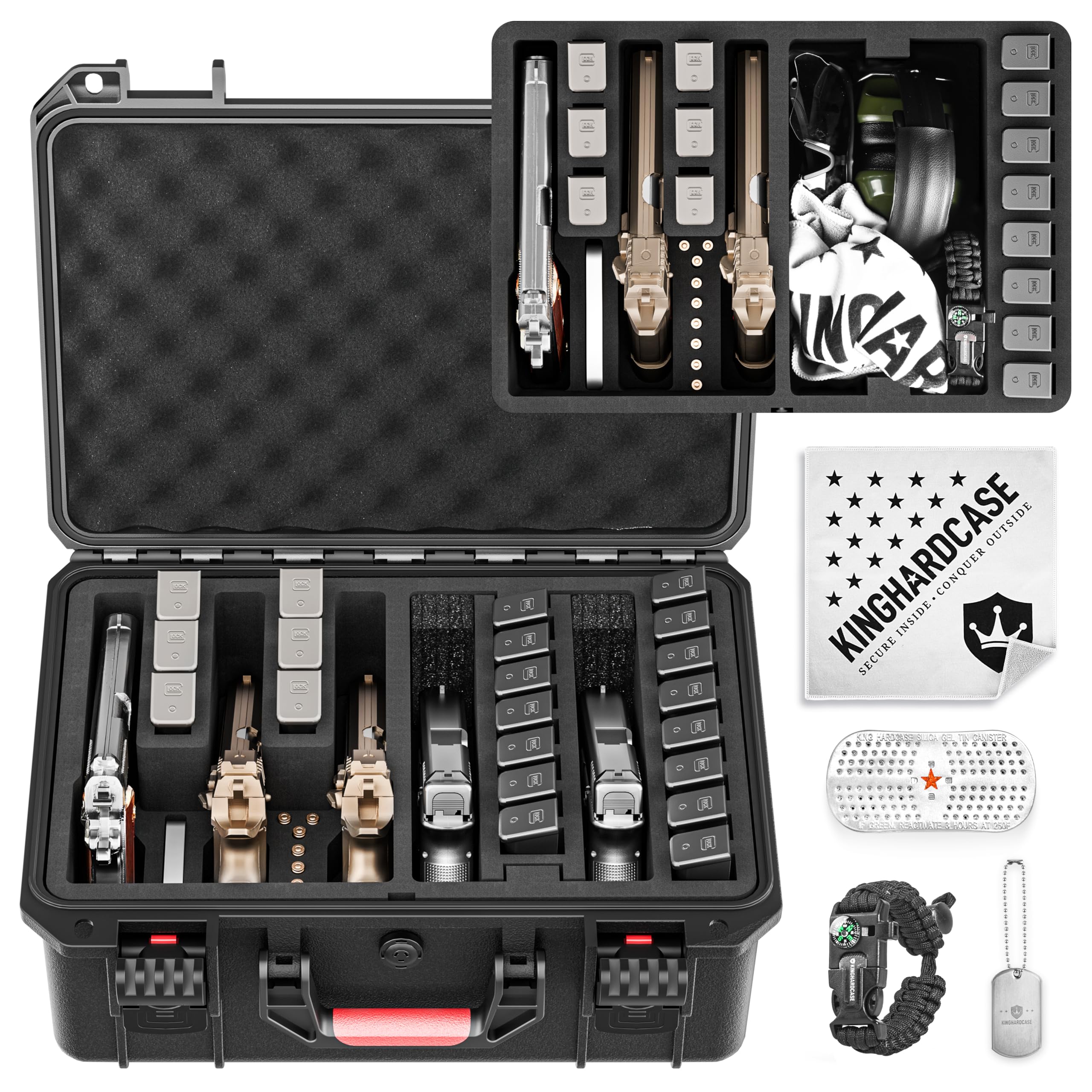 - 【𝐏erfect 𝐅it 𝐒tandard-𝐒ized 𝐏istols】 Kinghardcase gun case for handguns is precisely designed to fit standard-sized 9mm pistols, making it the perfect storage and travel solution. In addition, it has locking hole designed to be equipped with a TSA-approved lock for convenient air travel.(case does not include locks)
