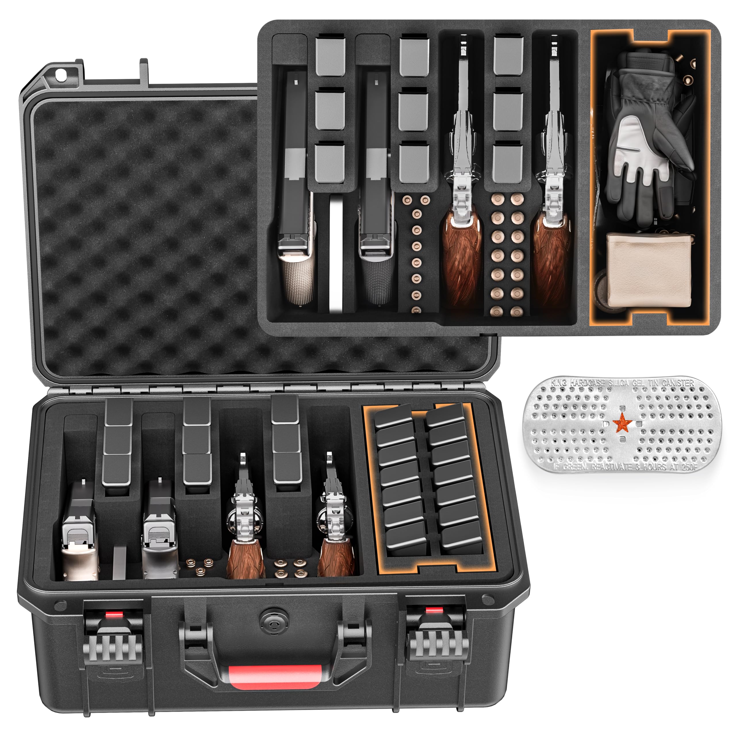 - 【𝐈𝐏𝟔𝟕 𝐖aterproof & 𝐃ust-𝐑esistant】 Handgun case boasts an impressive IP67 rating, making it both shockproof and waterproof. This secure case keeps firearms safe up to 1 meter submerged, The O-ring seal prevents dust and water from entering, keeping your pistol and magazines dry and clean, thereby extending their lifespan.