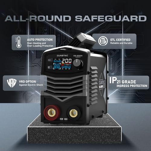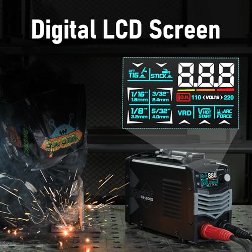 - 【2 IN 1 WELDER】The SS-200S STICK Welder offers 2 welding modes: Stick and Lift TIG (TIG Torch NOT included in pack). Capable for welding Cast Iron, Mild Steel, Stainless Steel, and even thinner materials like sheet metal. Ideal for home maintenance, yard repairs, farm and road equipment fixing