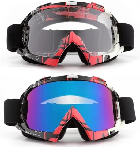 SPOSUNE Motorcycle Goggles, ATV Dirt Bike Off Road Racing MX Riding Goggle Anti-Scratch Dustproof Bendable UV400 Eyewear with Padded Soft Thick Foam,Adjustable Strap for Adults' Cycling Motocross
