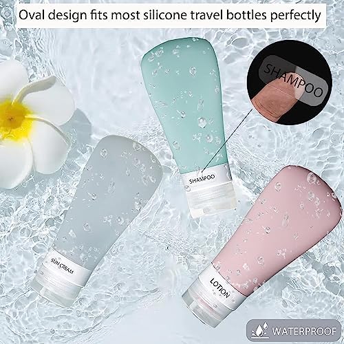 - ✅【Wide Application】-- The bathroom and beauty product labels is perfect for bottles, jars and other containers. Great for daily use and travel. SIZE: 0.86x0.43inch (square label stickers). SIZE: 0.86x0.23inch (oval label stickers). The oval shape fits most silicone travel bottles perfectly.