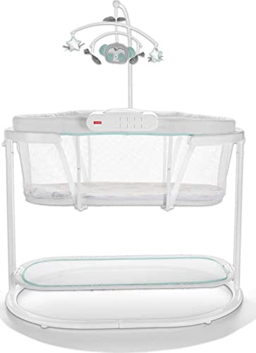 The Fisher-Price Soothing Motions Bassinet has everything to help your baby drift off to sleep in comfort. It gently sways along with your baby's natural motions (or with a gentle push from you) and has a variety of soothing options so you can find the combination that works best for your baby. From overnight light projection, calming vibrations, and a variety of gentle songs and sounds, your baby will be catching Zzz's in no time! Where development comes into play Sensory: A variety of soft textures, calming vibrations, and swaying motion engage your baby's senses. Security & Happiness: Soft padding, calming vibrations, and gentle swaying help soothe baby and become part of the nap and bedtime routine, giving your baby a sense of security.