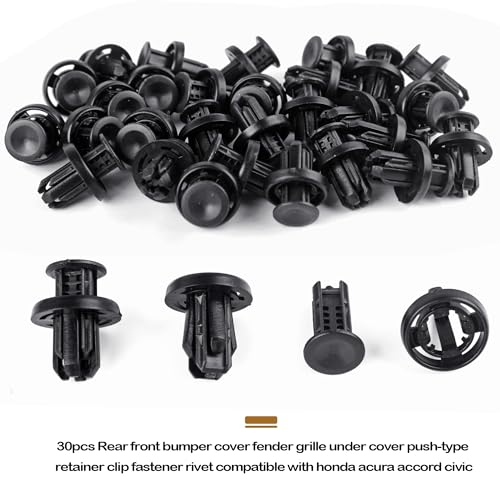- 30pcs Rear front bumper cover fender grille under cover push-type retainer clip fastener rivet compatible with honda acura accord civic replace 91505-TM8-003, fits into 10mm hole.