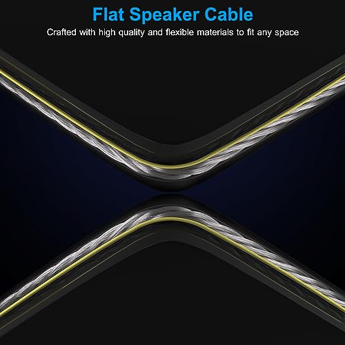 • 【Unique Flat Cable Shape】: Flat cable enables simpler and safer installation. You can easily and seamlessly extend the cable along walls, edges, or corners, and even slide it under the carpet, making it completely invisible. When connecting speakers to an A/V receiver or amplifier using this Mygatti Professional series speaker cable, it ensures the highest safety standards are achieved.