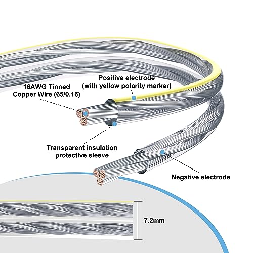 • 【Tinned OFC Copper Conductor】: Mygatti speaker wire features ultra-high 16awg tinned copper 2 conductors. In fact, it is more durable than pure copper and performance far superior to CCA (Copper Clad Aluminum). OFC cables can provide higher clarity and sound accuracy, with higher conductivity, thereby delivering more current to the amplifier and ensuring your Hi-Fi surround sound quality.