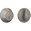 Deadbolt with Round Trim, Keyed 1 Side, Satin Nickel Finish